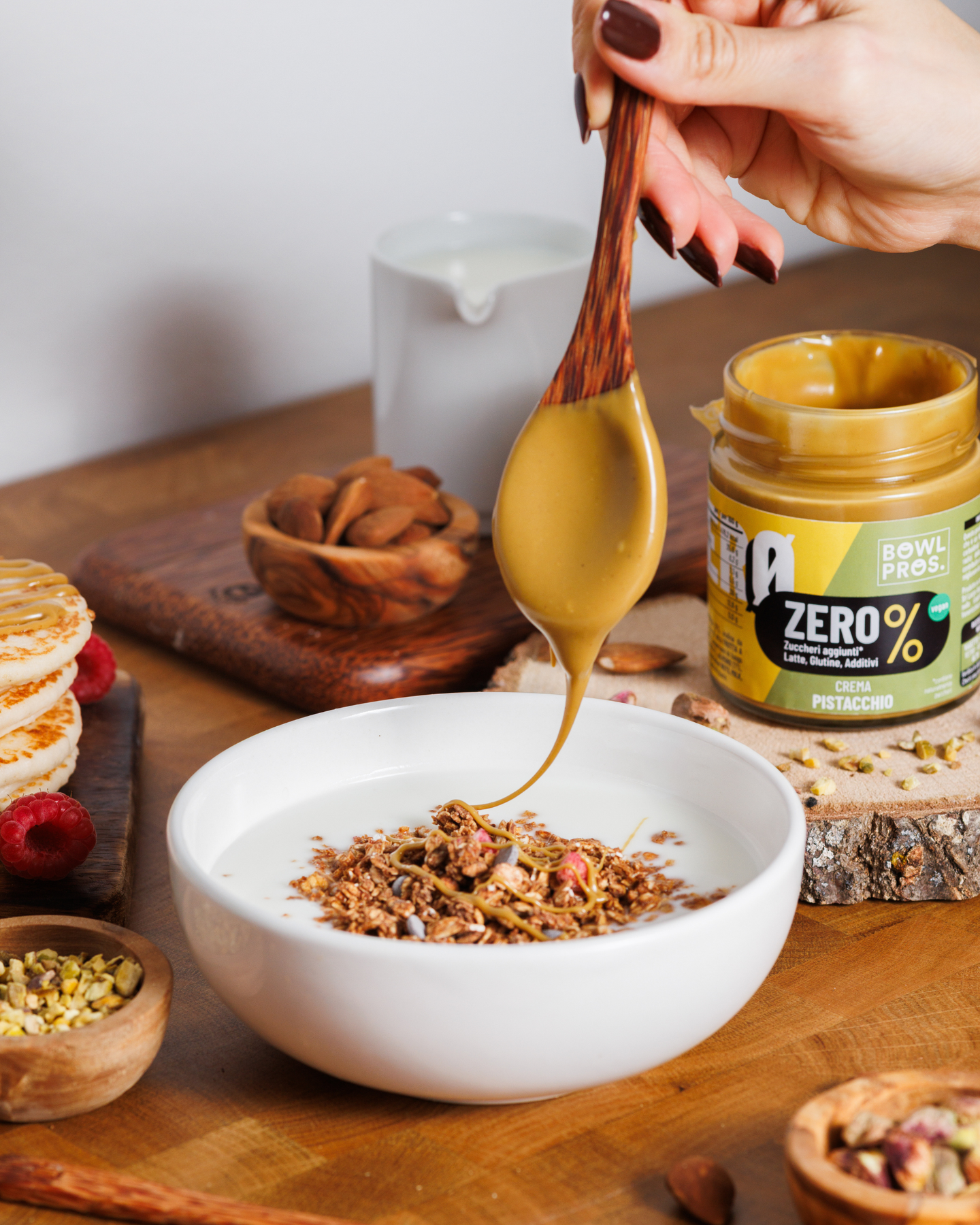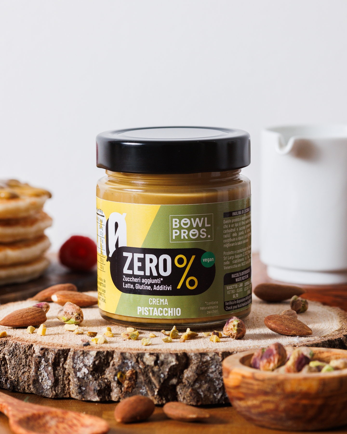 La Crema Pistacchio ZERO Bowlpros unisce il gusto autentico del pistacchio a una dolcezza naturale data dall’inulina di cicoria, una fibra vegetale priva di zuccheri e carboidrati.