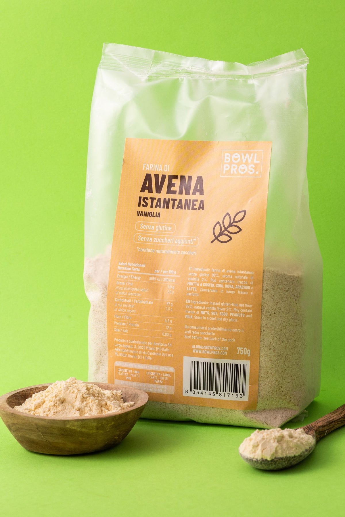 Farina di Avena Istantanea Senza Glutine e senza zuccheri aggiunti: completamente neutra e al naturale, senza aromi aggiunti.