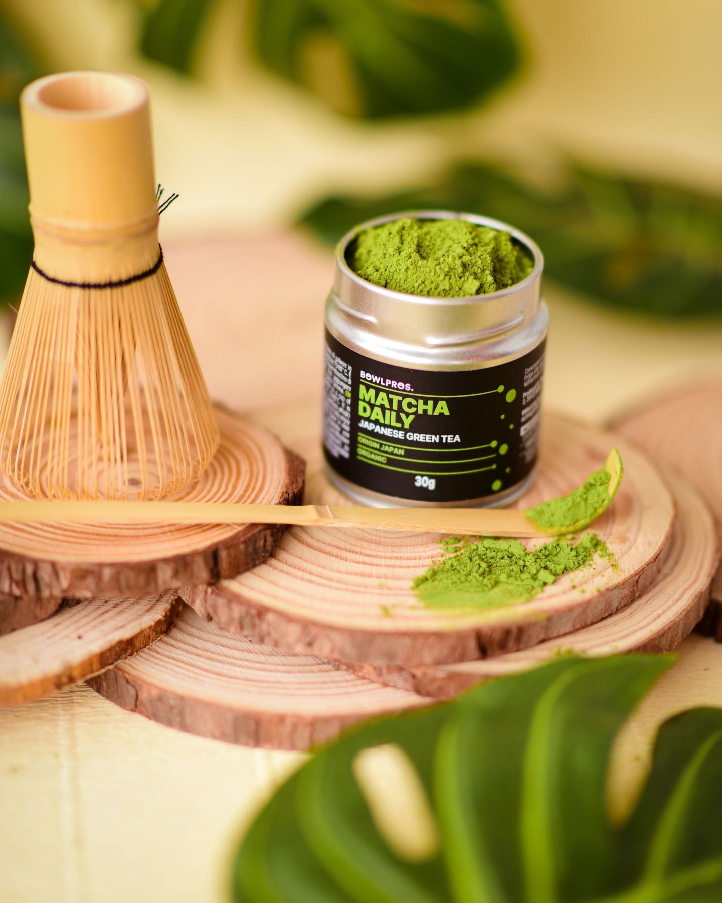 Il tè matcha è una variante del più famoso tè verde, ma in forma più concentrata. Grazie infatti al modo in cui viene cresciuta la pianta, la bevanda è ricca di vitamine e proprietà benefiche. Infatti durante la preparazione del tradizionale tè verde le foglie vengono usate durante l'infusione e poi rimosse, mentre nel caso del Matcha le foglie vengono consumate sotto forma di polvere contribuendo all'assimilazione di antiossidanti, vitamine e proteine. Inoltre, gli studi infatti hanno dimostrato come il tè verde sia una delle bevande più salutari: una sola tazza di tè Matcha contiene i principi nutritivi di 10 tazze di tè verde. Infatti il Matcha essendo una polvere super concentrata di proprietà antiossidanti, apporta dei benefici all'organismo anche in piccole quantità.